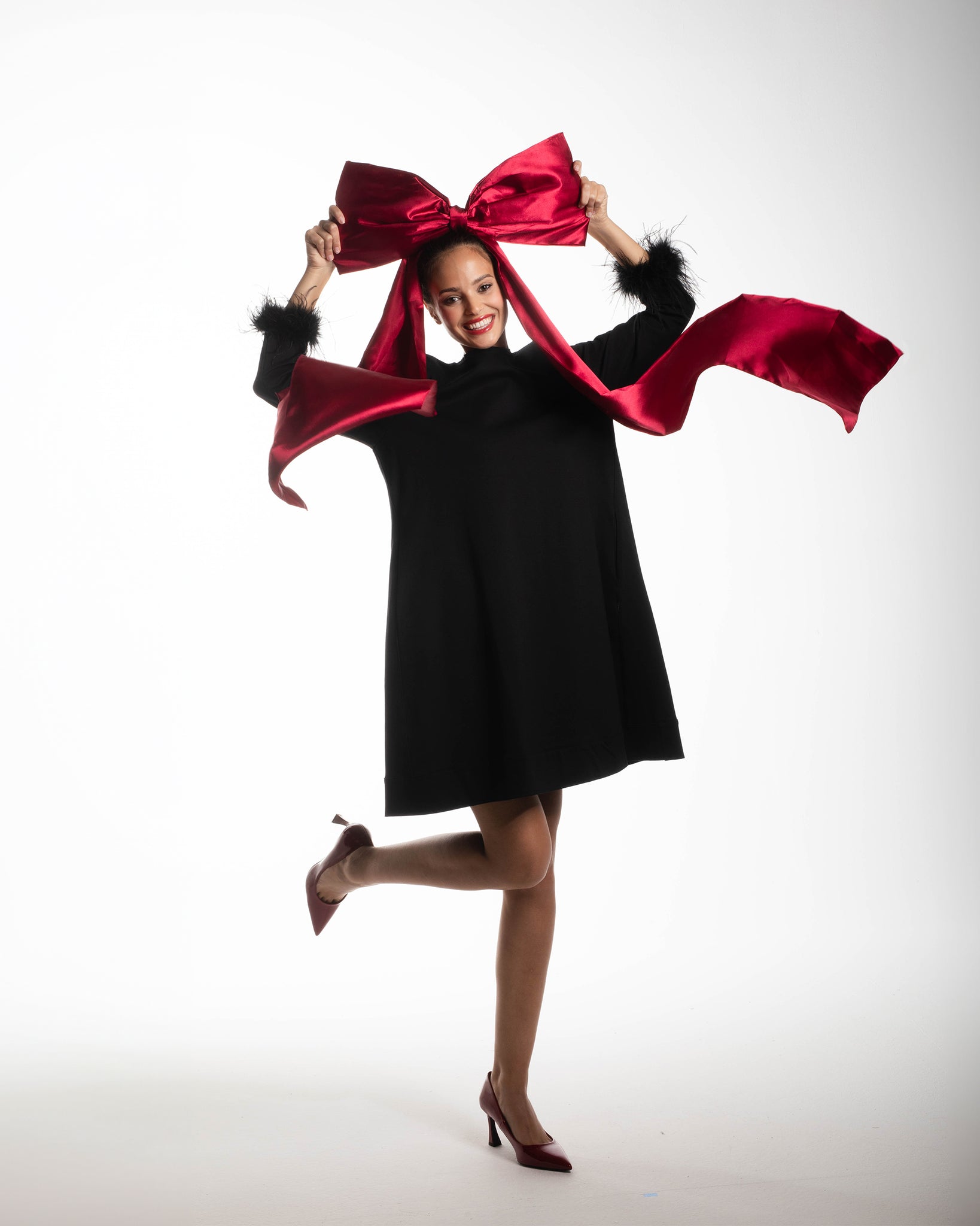 This midi dress has a minimalist appeal yet is full of personality; the simple silhouette is balanced by the feathered detail that adds movement and glamorous allure for a contemporary and refined look.