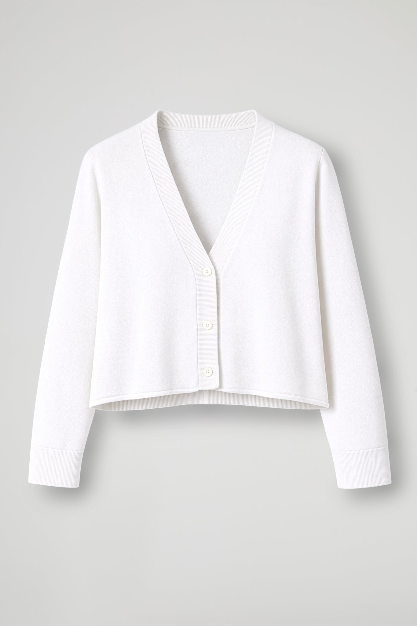 Cardigan in viscose jersey; the boxy line enhances the waist and slims the figure, while the V-neck gives a feminine and versatile allure, perfect to wear both closed as a sweater and open as a light shrug.