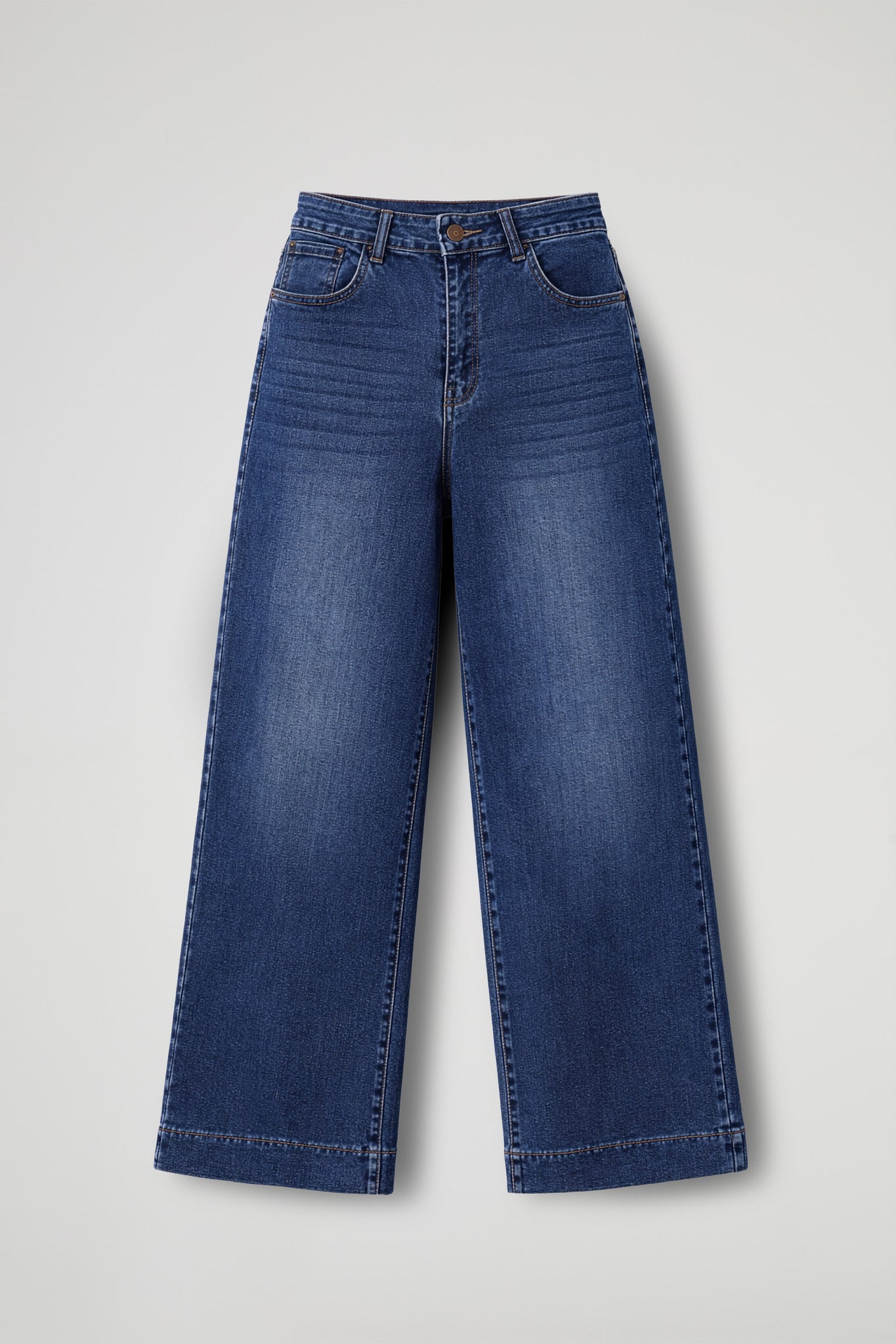 Jeans dal taglio pulito e contemporaneo, la vita regolare con passanti e chiusura classica definisce la silhouette, mentre la gamba dritta leggermente ampia regala comfort e un look attuale, facile da abbinare. Il lavaggio blu denim con leggere sfumature dona profondità al colore e un effetto vissuto ma elegante, I dettagli iconici del 5 tasche completano il modello: tasche anteriori con taschino, due tasche posteriori applicate, impunture a contrasto e fondo rifinito con un ampio orlo che valorizza la linea del pantalone e permette anche un piccolo risvolto.