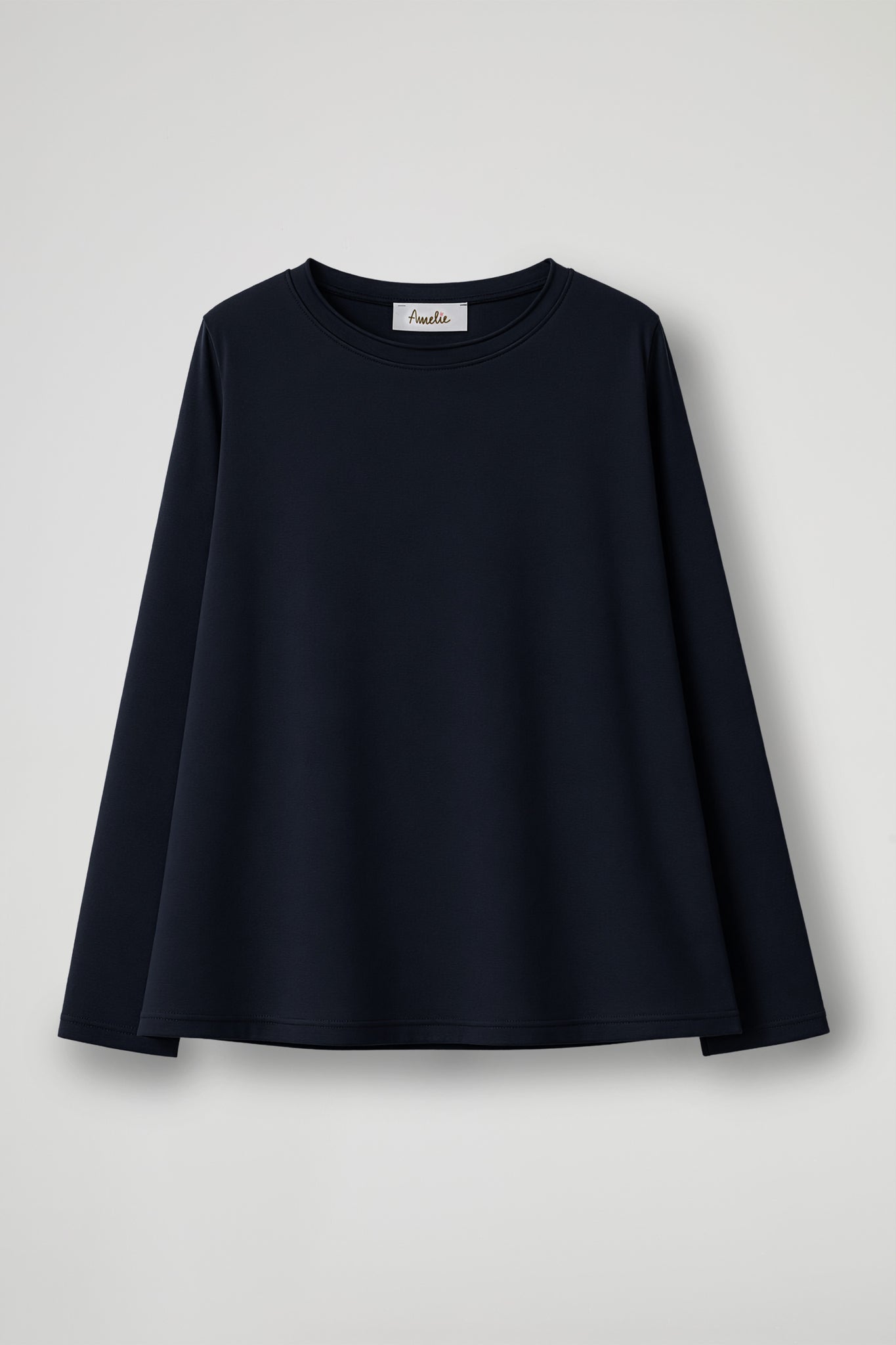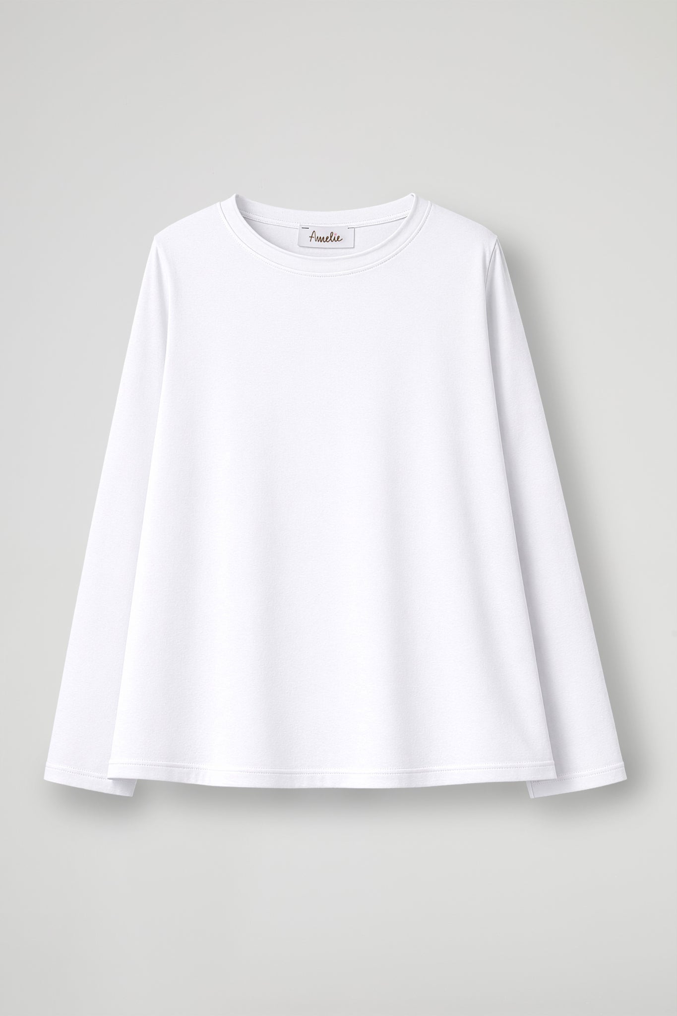A long-sleeved sweater with a minimal, contemporary appeal, a versatile piece made from soft cotton fabric that hugs the figure with a comfortable fit that flatters without constricting; the essential design is enhanced by the finished round neckline and soft lines that make it extremely versatile.