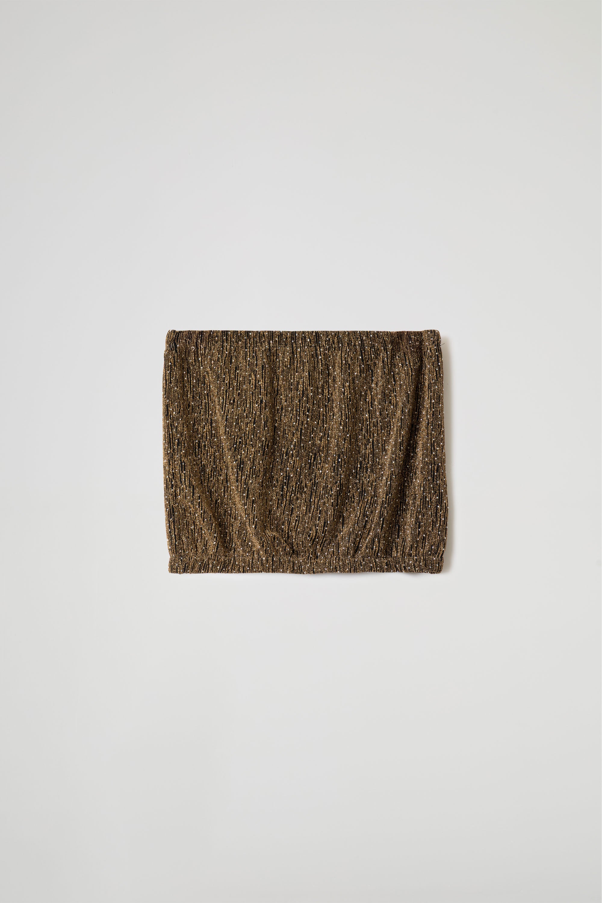 Top corto luminoso e sofisticato, pensato per chi ama distinguersi con un tocco di eleganza moderna; Il design minimal ma raffinato valorizza la silhouette con semplicità, mentre il taglio corto e la linea morbida lo rendono perfetto per creare outfit da sera o coordinati eleganti o per dare un tocco glam anche ai look più semplici.