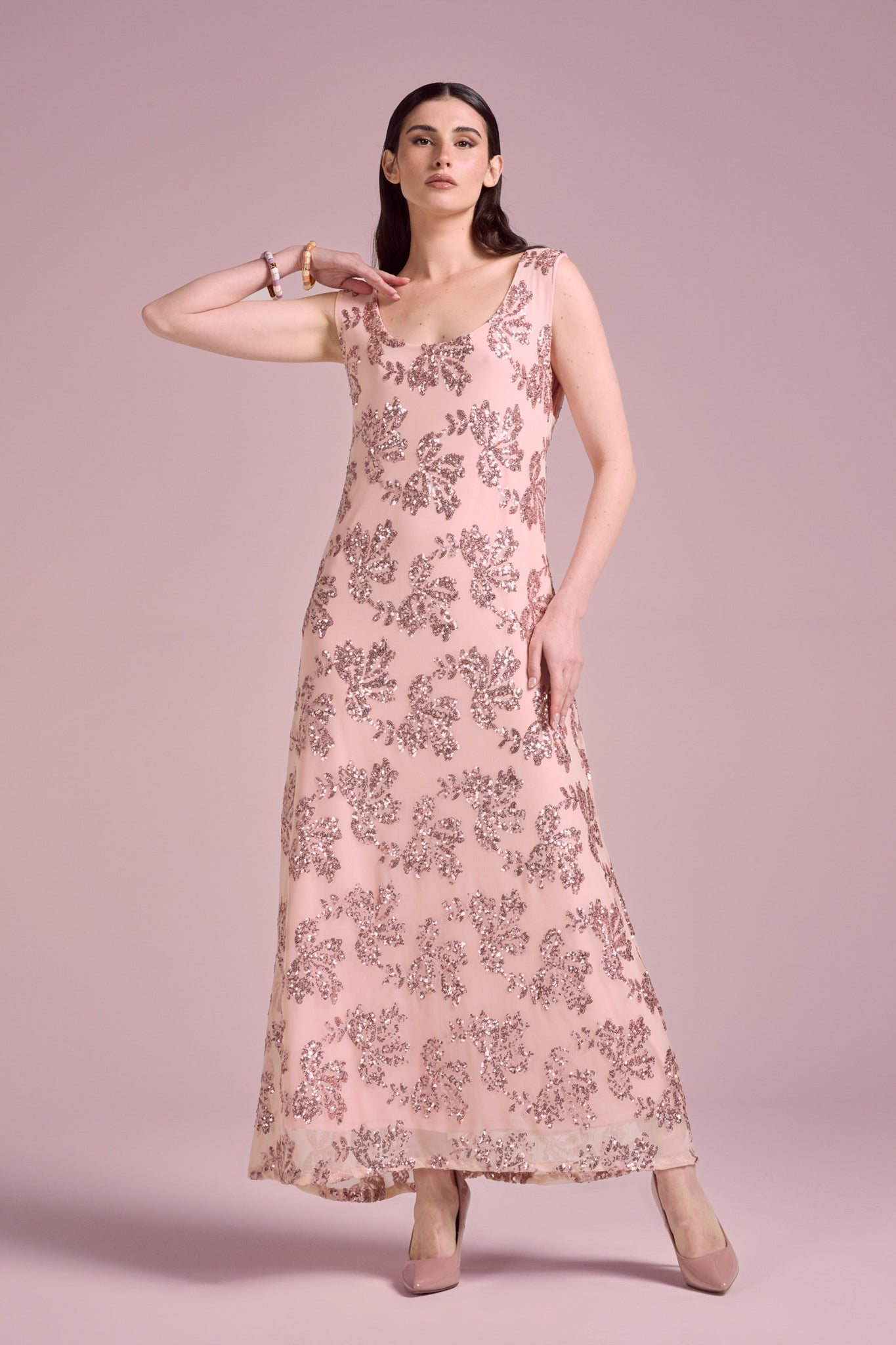 ABITO LUNGO RICAMI IN PAILLETTES FLOREALI