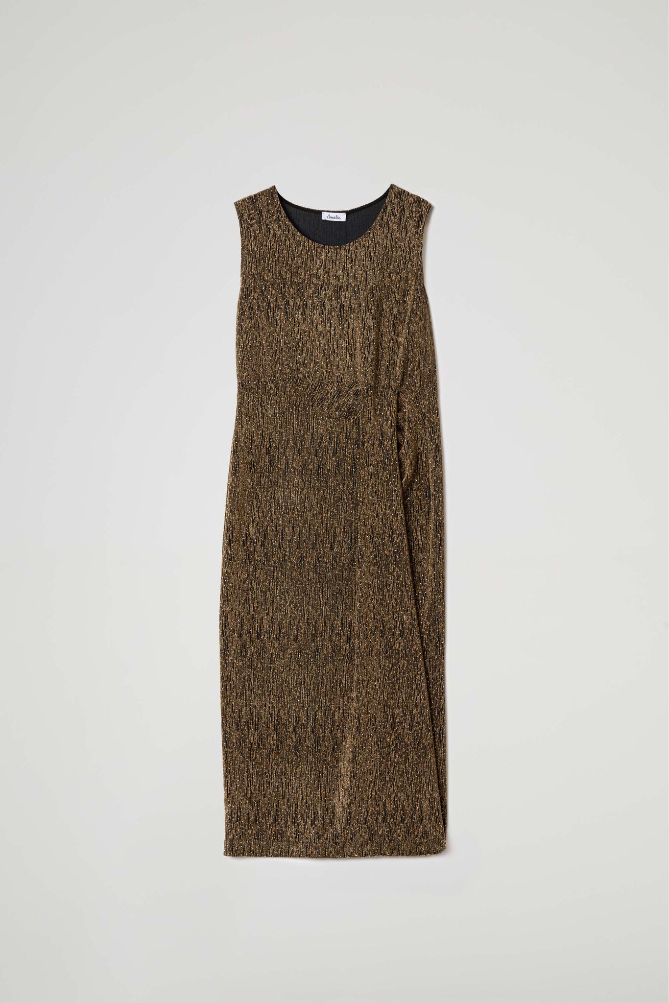Abito in tessuto lurex , leggero, confortevole e luminoso, è un abito che non ha bisogno di troppi accessori; basta indossarlo per sentirsi immediatamente chic e protagonista della scena.