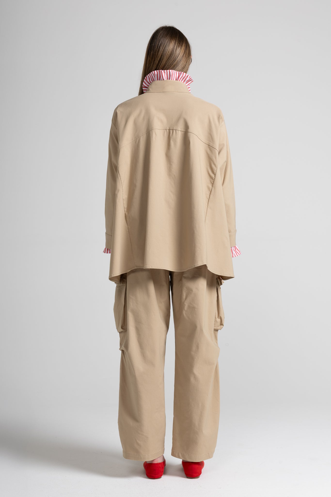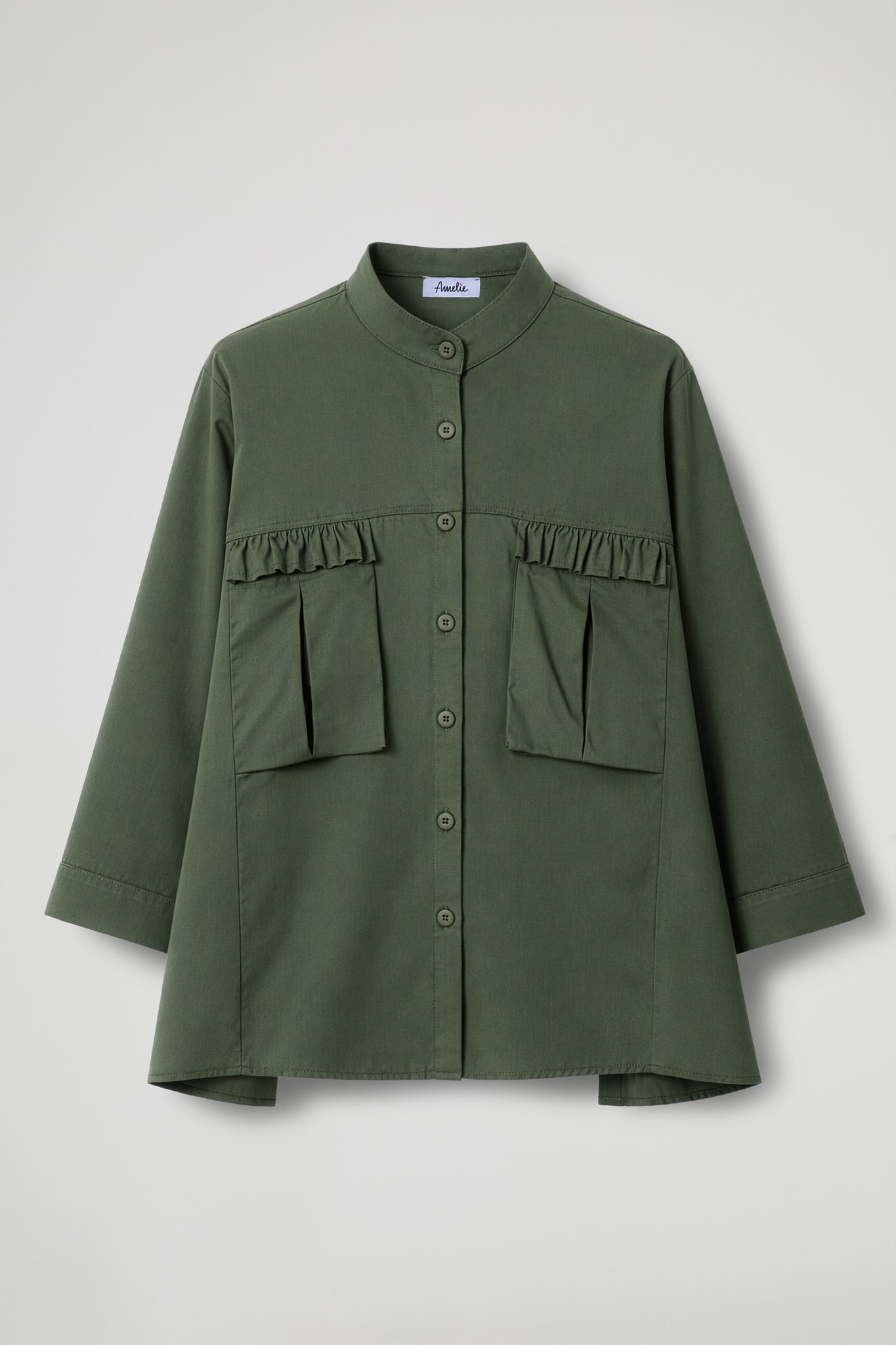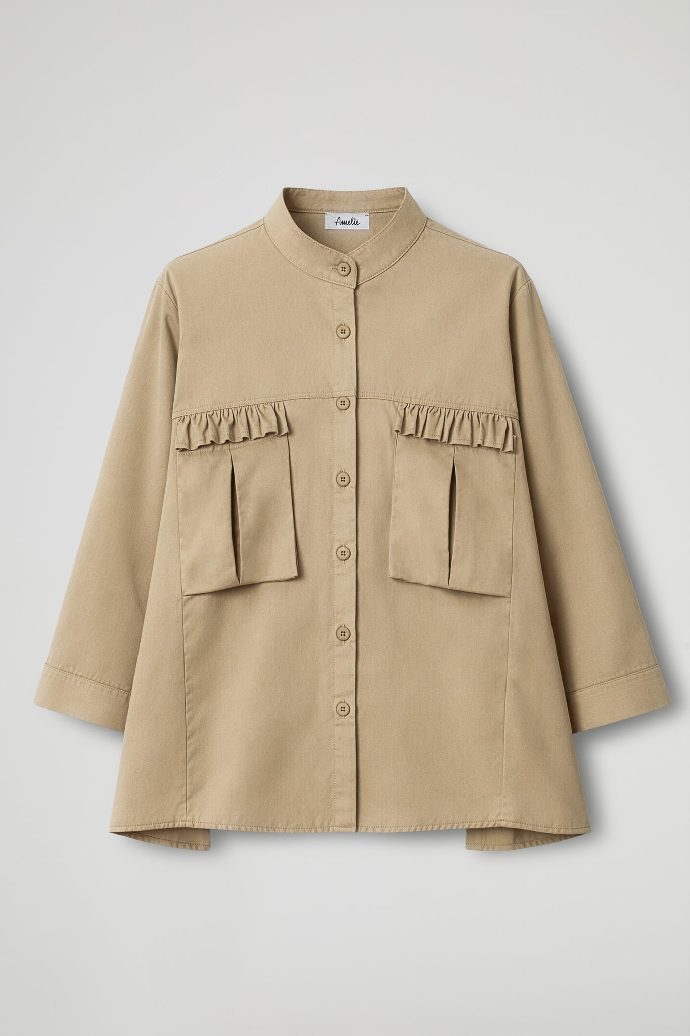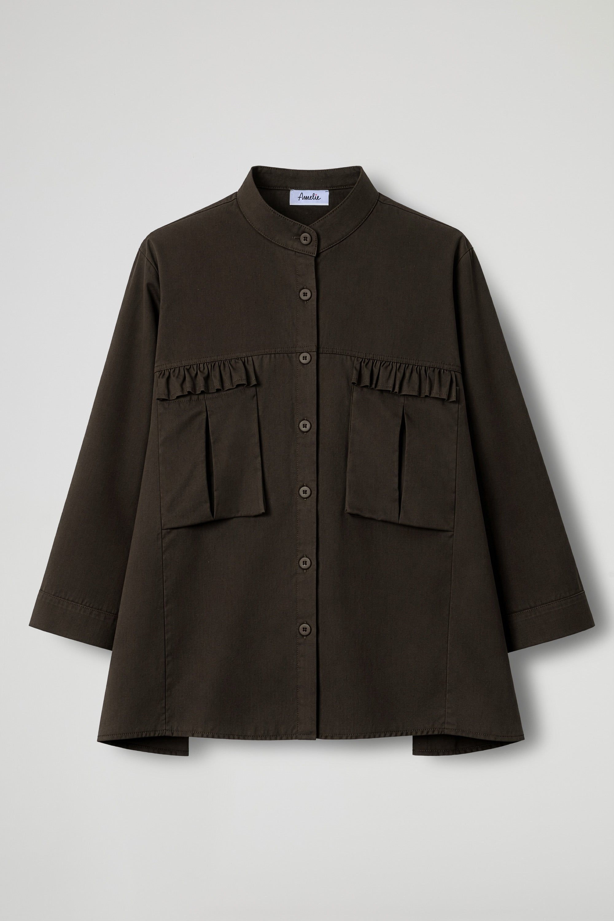 Camicia-giacca, dal design contemporaneo e funzionale. Il modello presenta collo alto alla coreana e chiusura frontale con bottoni tono su tono. Sul davanti spiccano le maxi tasche applicate con costruzione a pieghe, pensate per dare struttura e capienza.