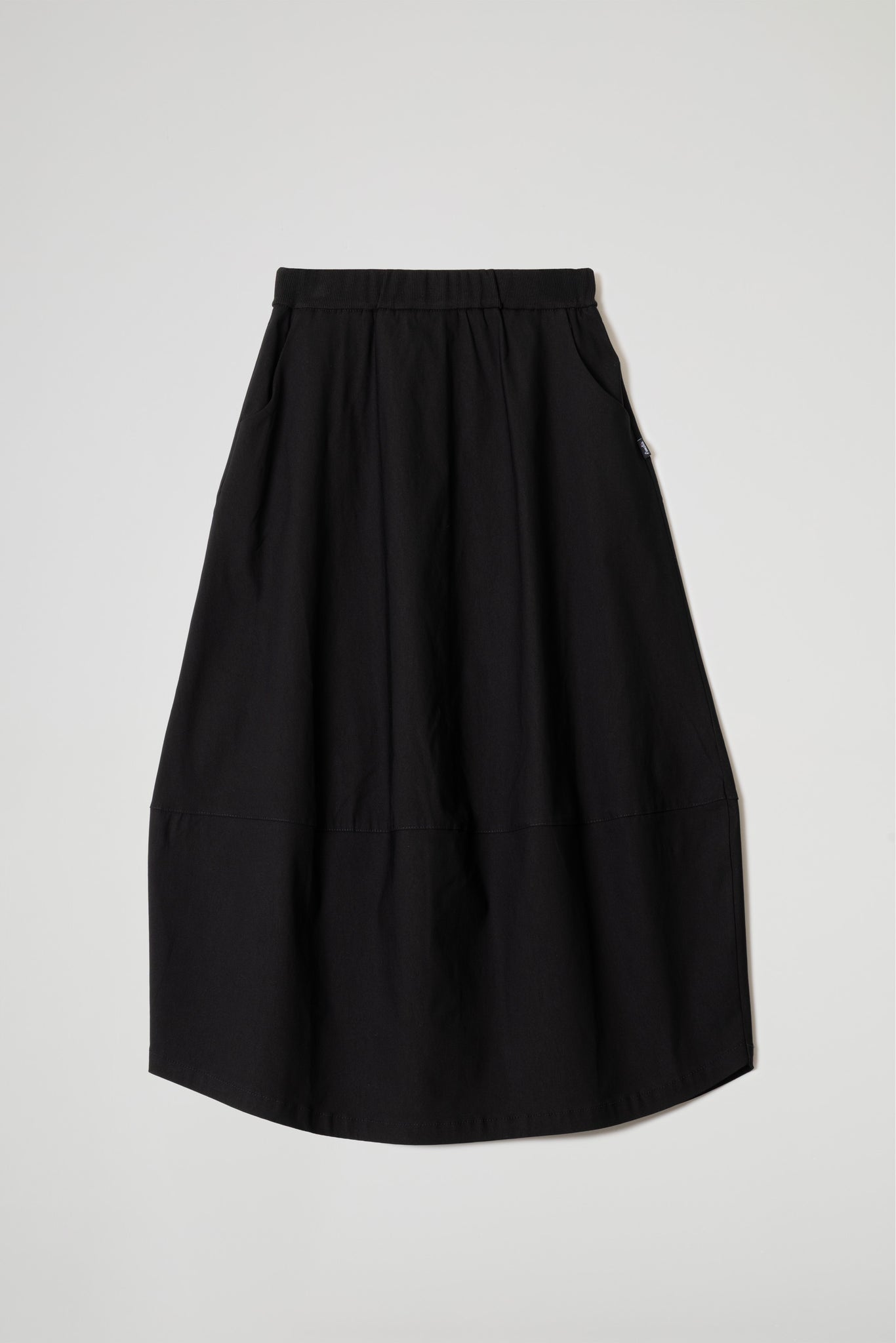 Gonna midi dalla linea leggermente stondata, modello semplice e versatile, adatto sia a look casual che a outfit più formali.