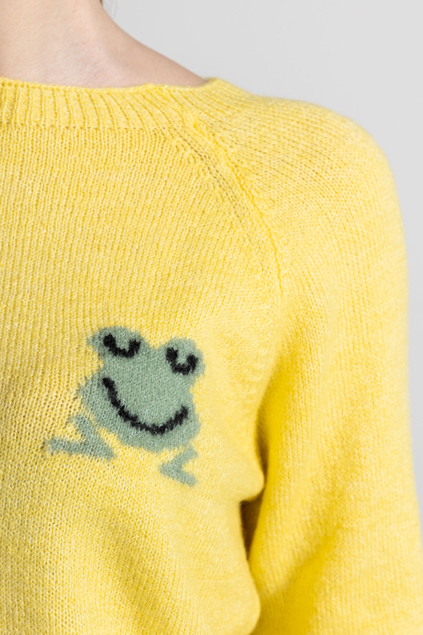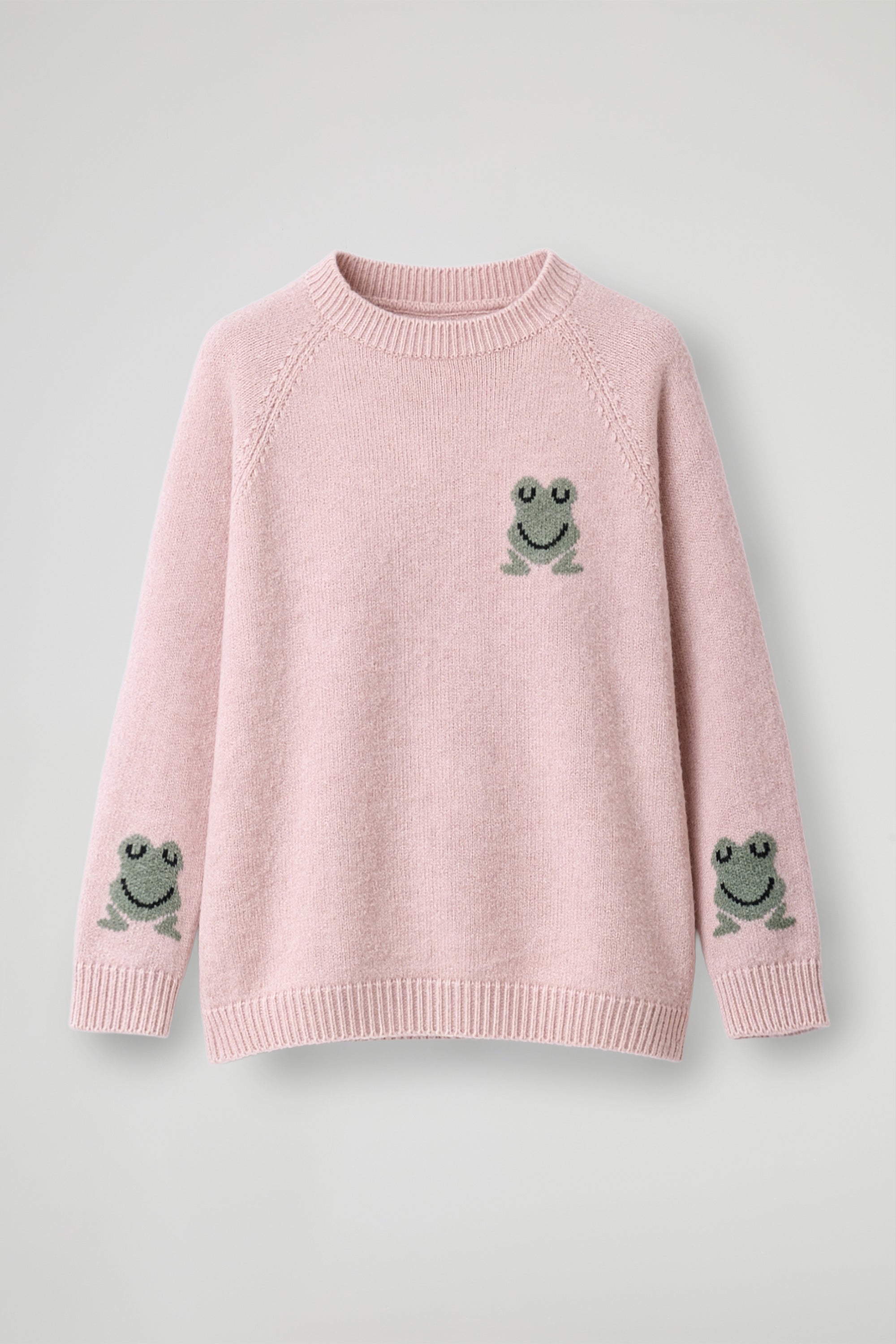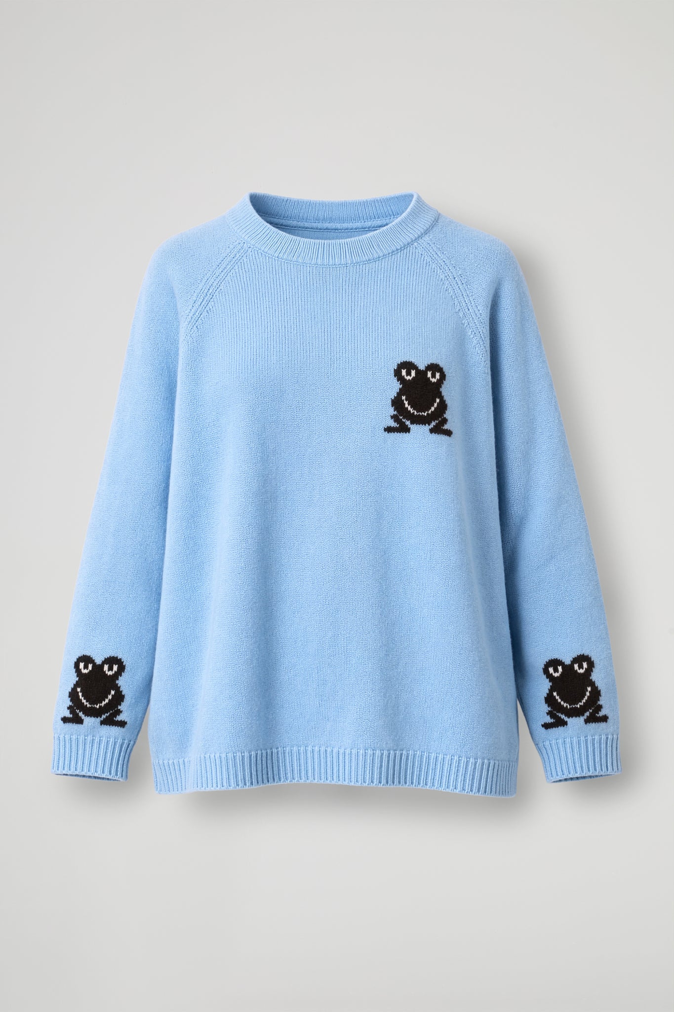 Maglione dal mood ironico in morbida maglina con simpatico ricamo coccinella: una sul davanti e dettagli coordinati sulle maniche, per un tocco giocoso ma raffinato. La linea è dritta e comoda, con girocollo e finiture a costine su fondo e polsi che mantengono la forma e valorizzano la vestibilità.