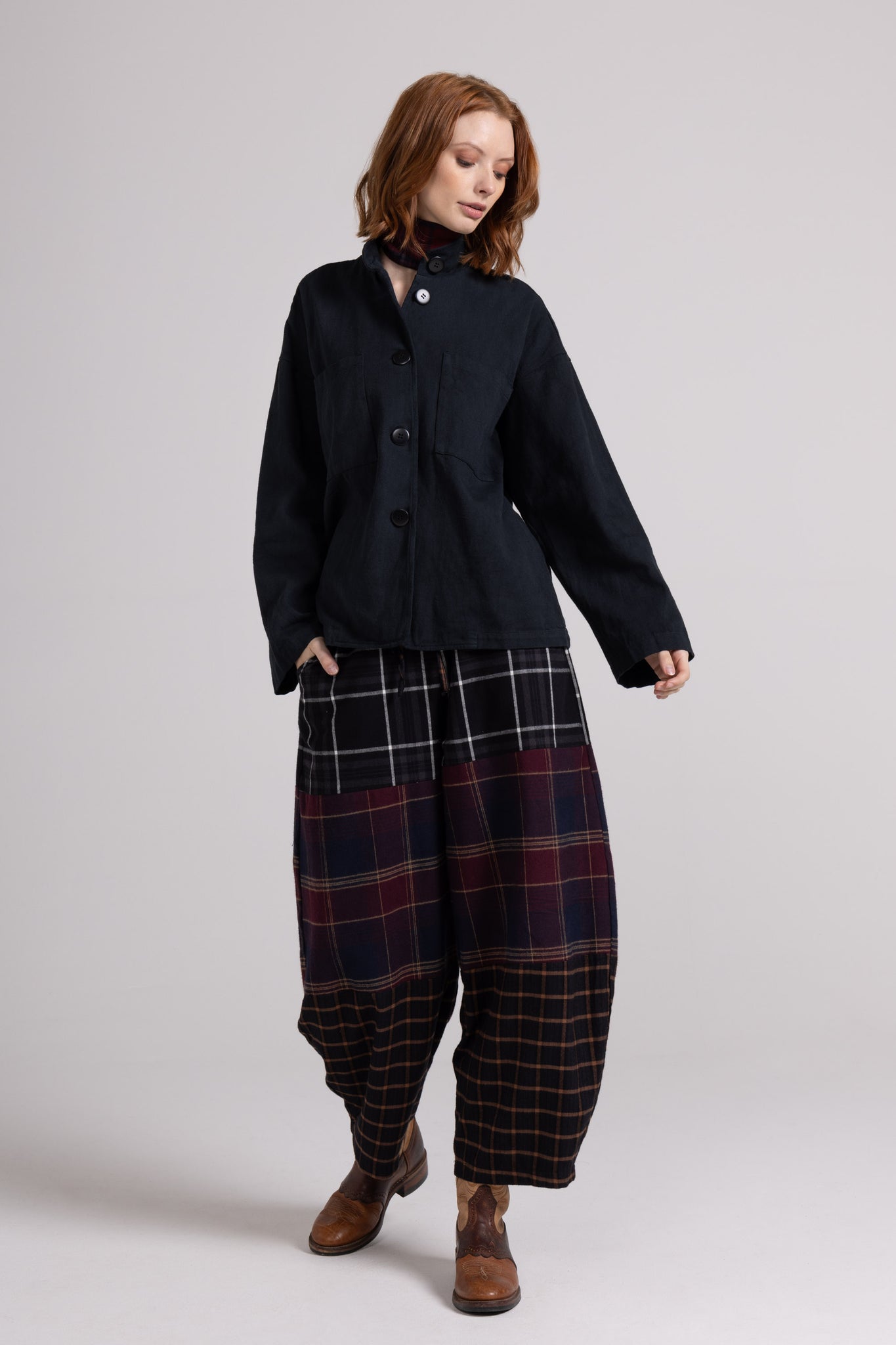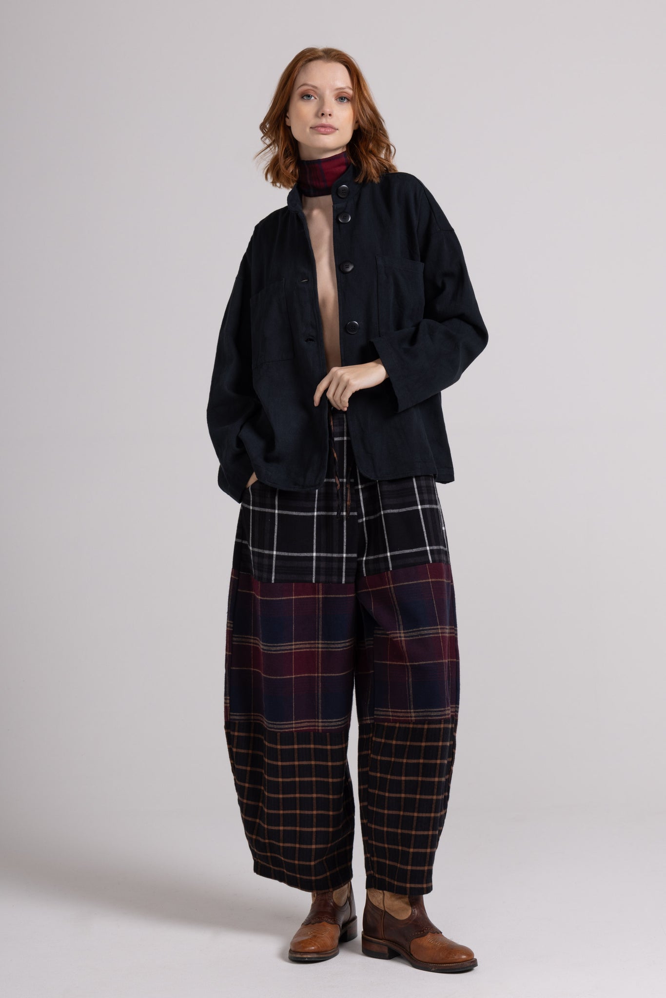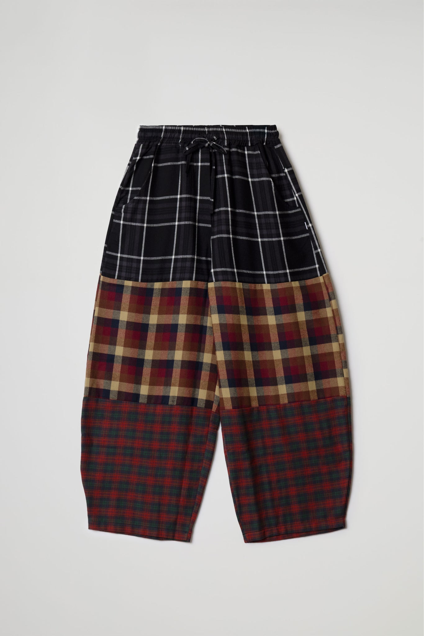 Pantalone baggy, 3 tagli patch su gambe, coulisse regolabile in vita, elastico in vita, tasche sagomate.