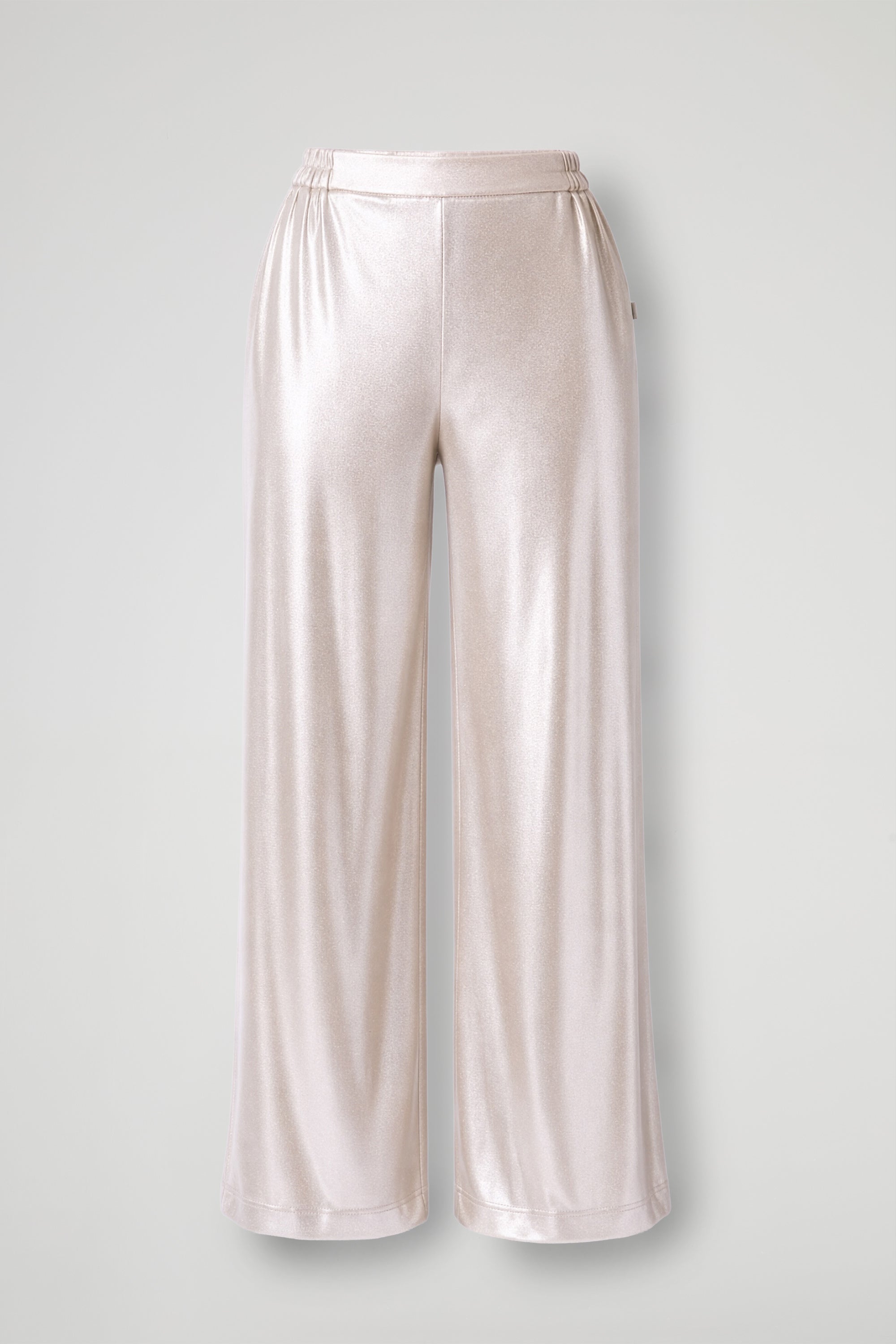 Pantaloni a palazzo dal tocco glow sono il pezzo perfetto per trasformare qualsiasi look: morbidi, fluidi e super comodi, slanciano la silhouette grazie alla vita alta e alla gamba ampia che cade dritta fino al fondo. Ideali per occasioni speciali, ma bellissimi anche con una semplice t-shirt e sneakers per un effetto glam quotidiano.
