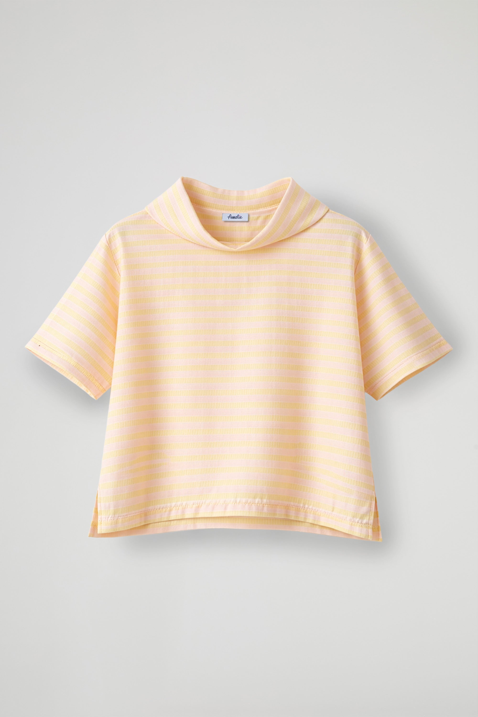 Top a righe dal gusto fresco e contemporaneo. Realizzato in tessuto morbido e confortevole, presenta maniche corte e un originale collo morbido leggermente ampio che dona movimento e carattere al capo. La linea è comoda e leggermente boxy, con piccoli spacchi laterali sul fondo per una maggiore libertà di movimento; Un capo casual e versatile, perfetto per completare look quotidiani con un tocco di stile.